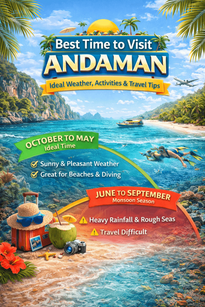 During the best time to visit the Andaman Islands, travelers can relax on beautiful beaches. They can enjoy fresh seafood, explore the island’s culture, and stay at chosen resorts. Andaman Travel Care has skilled local guides and well-managed logistics. This ensures safe travel, easy inter-island transfers, and a relaxing holiday experience.